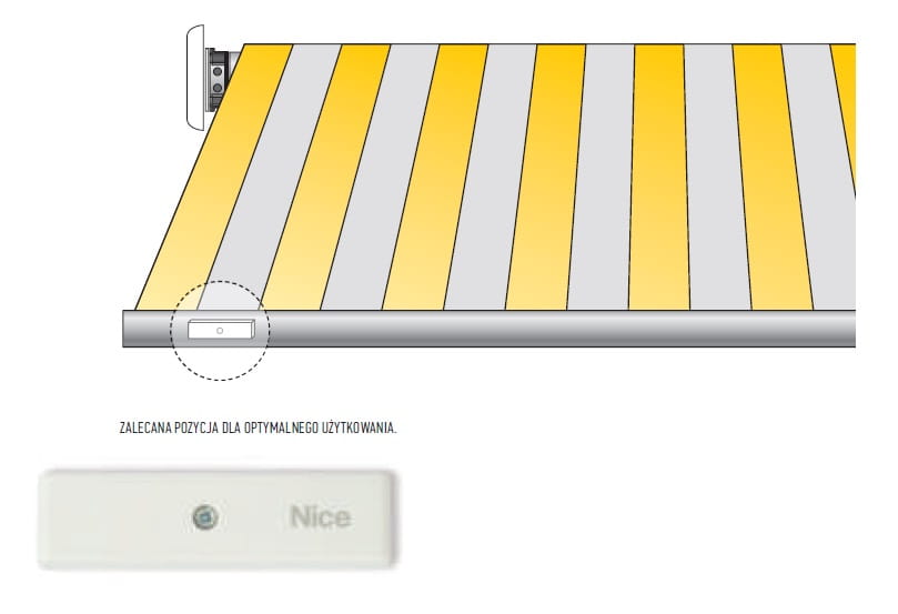 Czujnik wiatru do bezpośredniego montażu na markizie, zasilany bateriami. Czujnik chroni markizę przed silnym wiatrem. Radiowy , bezprzewodowy czujnik podczas podmuchu wiatru wysyła sygnał do silnika zamontowanego w markizie w celu jej zwinięcia. Poziomy czujnik do wszystkich typów markiz posiada intuicyjną regulację poziomu czułości siły wiatru. Prosty i szybki montaż. Przy pomocy dwóch śrub możemy przymocować czujnik NICE NEMO VIBE do belki markizy. Bezprzewodowy, zasilany bateriami. Nie wymaga żadnych dodatkowych połączeń.