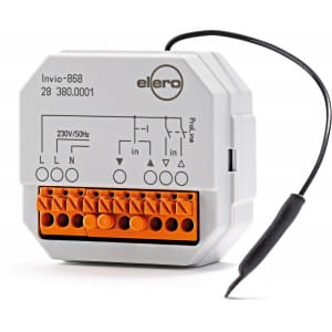 Nadajnik radiowy Invio-868 tworzy z dostępnego w handlu przełącznika nadajnik radiowy lub może zostać podłączony do innego urządzenia ProLine (inteligentne sterowanie).Invio-868 instaluje się w puszce podtynkowej o podwójnej głębokości i podłącza do umieszczonego przed nią przełącznika.