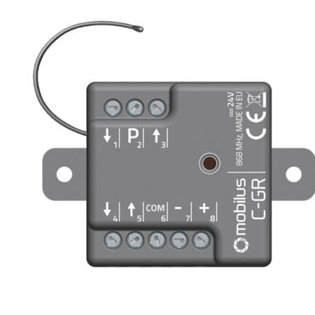 MOBILUS C-GR 12/24V- moduł radiowy przeznaczony do sterowania bramą wjazdową lub garażową wyposażoną w siłownik.Moduł MOBILUS C-GR pracuje w standardzie dwukierunkowej komunikacji COSMO | 2WAY.