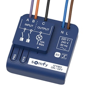 Odbiornik wł/ wył SOMFY IZYMO io umożliwia dodanie protokołu io-homecontrol z informacją zwrotną do oświetlenia lub sprzętu domowego, co umożliwia ich zdalne sterowanie przez pilota lub internet. Dodając je do systemu TaHoma lub Connexoon umożliwiamy sterowanie nimi za pomocą smartfonu, tworzyć scenariusze i harmonogramy oraz symulować obecność.