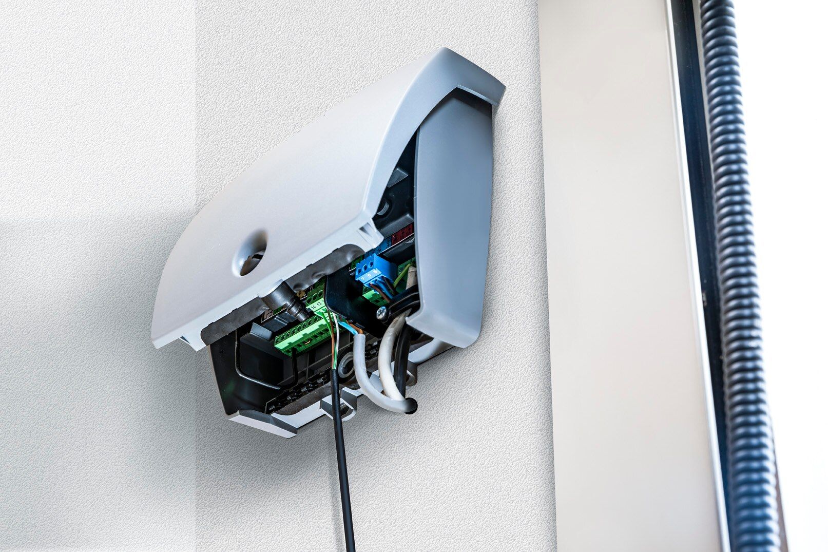 Odbiornik ROLLIXO SMART io z przewodem, przeznaczony do sterowania bramą garażową rolowaną w obiekcie mieszkalnym, posiadającą silnik Somfy ROD CSI oraz wyposażoną w dolną listwę bezpieczeństwa i hamulec bezpieczeństwa przed opadaniem pancerza.
