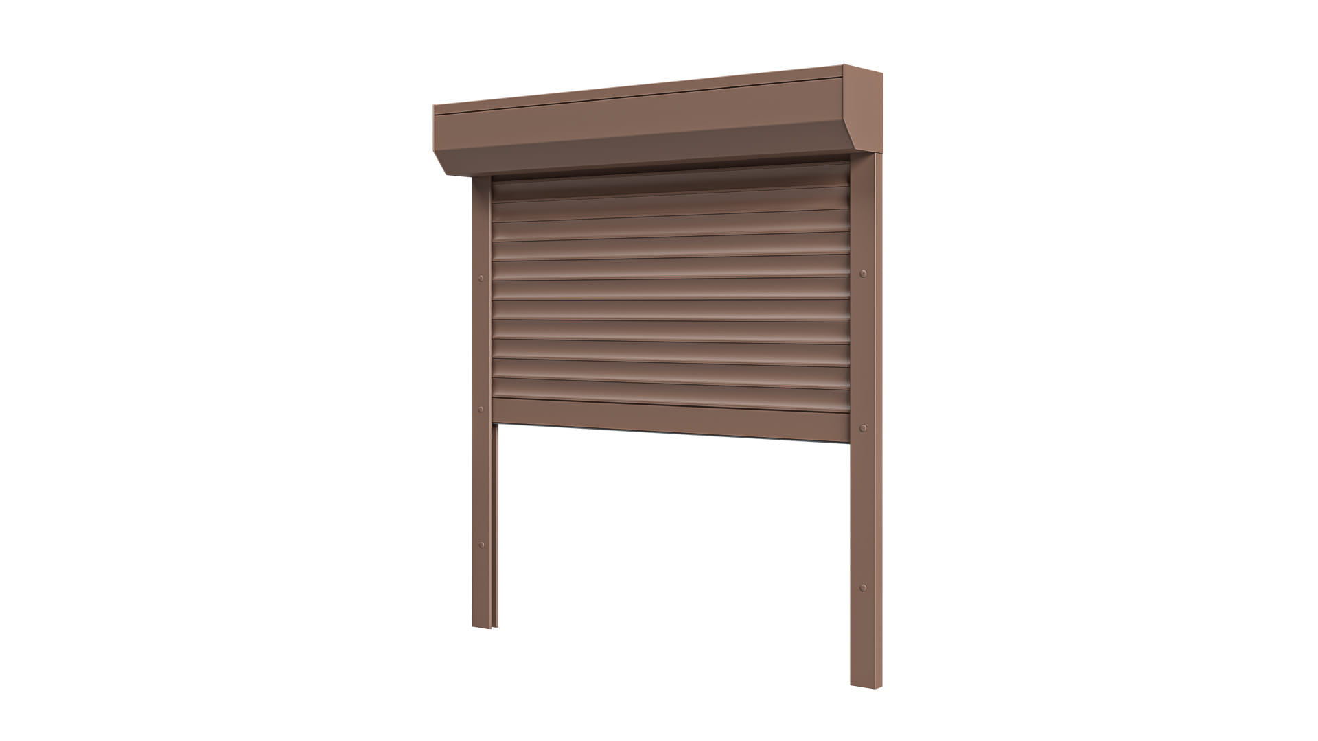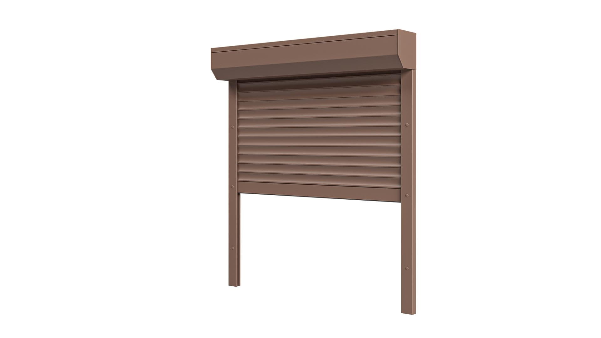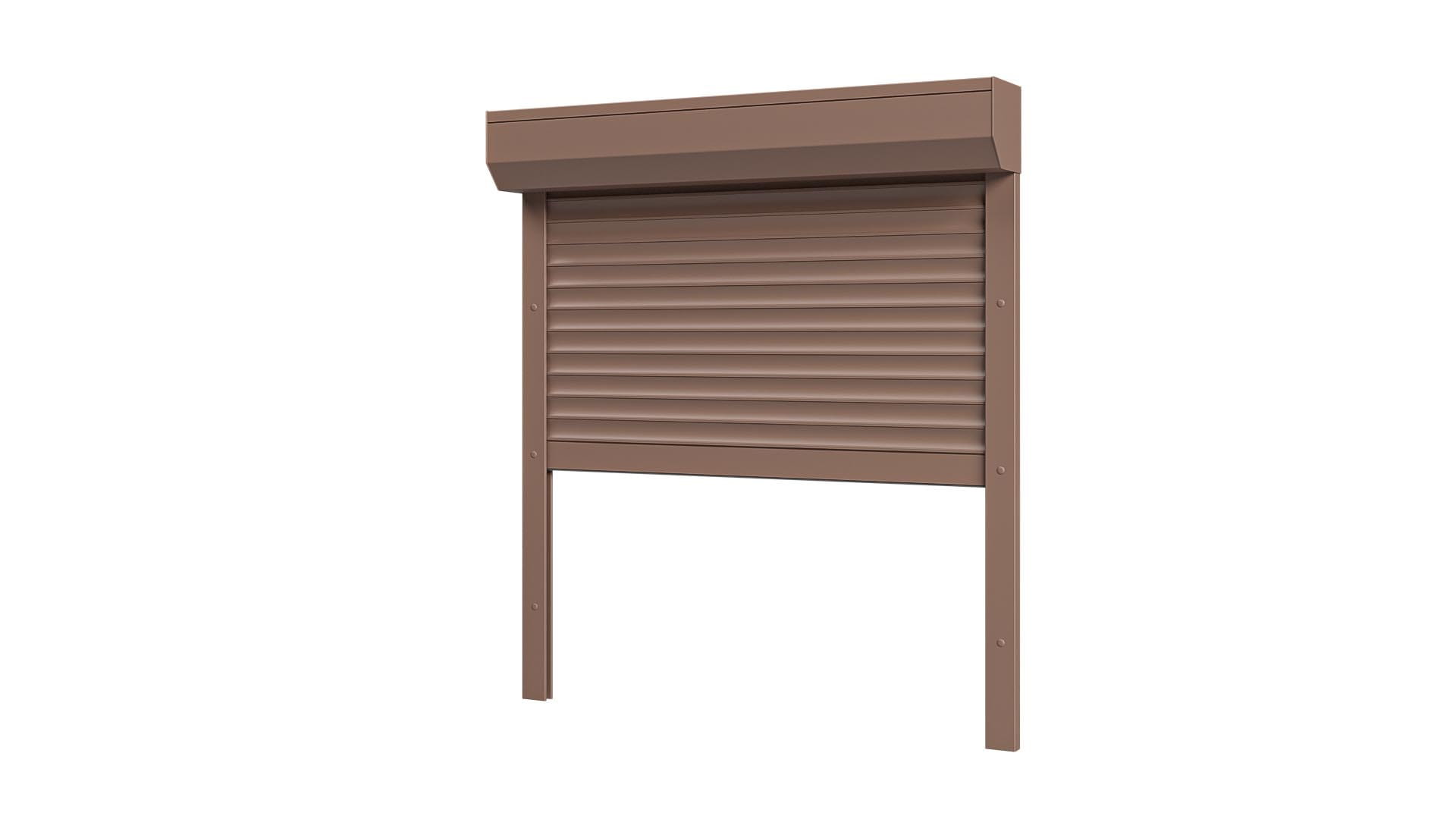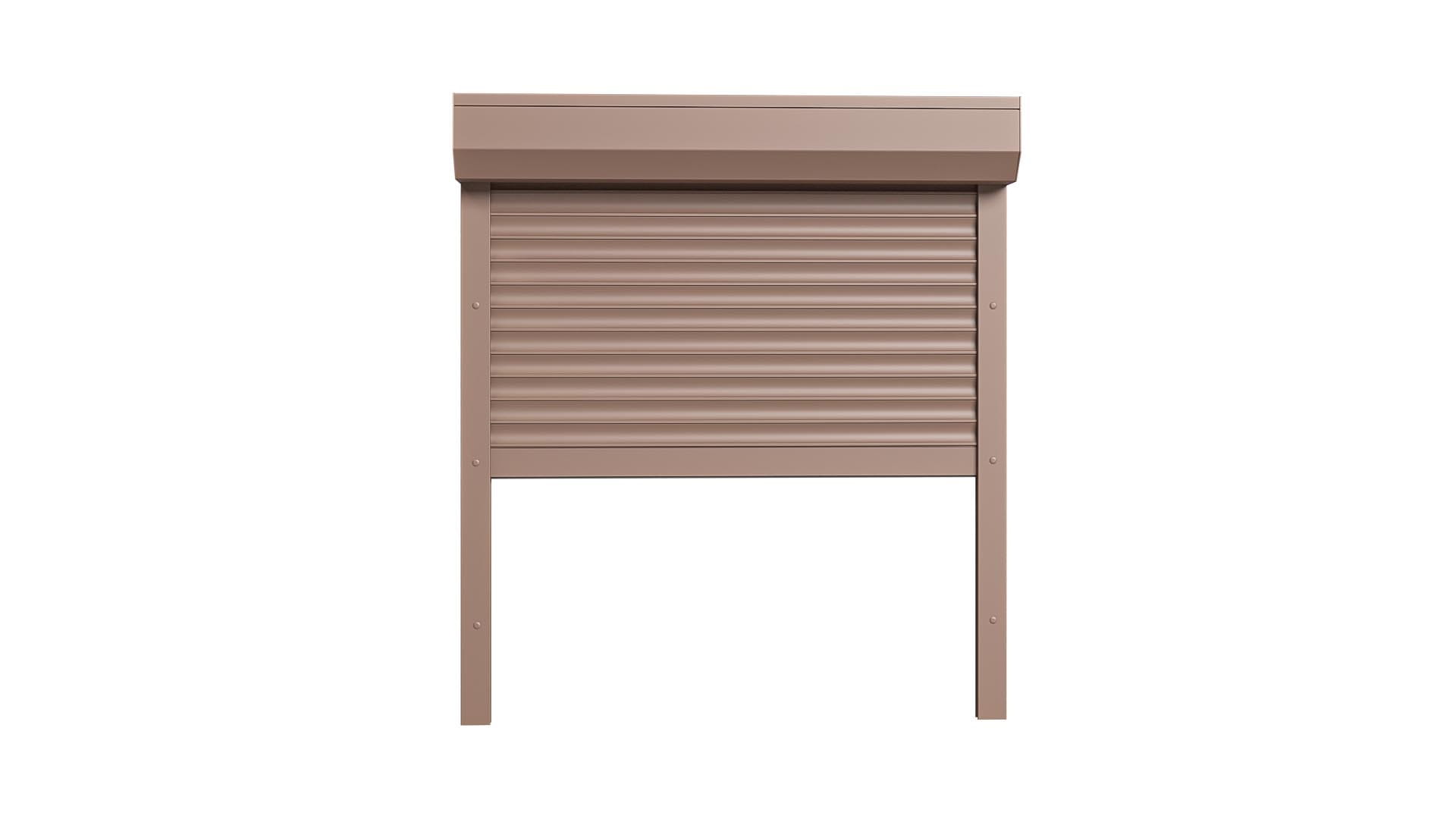 Roleta Zewnętrzna Jasny Brąz Natynkowa montowana na fasadę budynku.