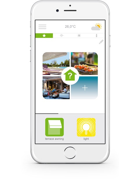 3 aplikacje do wyboru do sterowania ze smartfona. 3 otoczenia życia domowego: rolety i markizy okienne, taras, wejścia. Korzyść z połączenia z domem i znajdującymi się w nim urządzeniami — lokalnie lub zdalnie. Wyjątkowe funkcje, intuicyjne i przyjazne, dostępne dla wszystkich, zapewniające spokój, dobre samopoczucie i jeszcze intensywniejsze przeżycia w domu.
