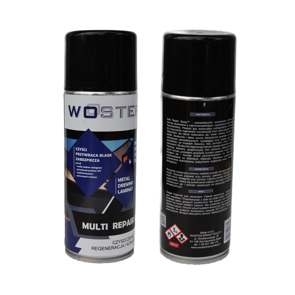 Specjalistyczna nowoczesna formuła zbudowana o najnowocześniejsze i sprawdzone technologie do czyszczenia, regeneracji i konserwacji bram, drzwi i rolet zewnętrznych. Środek zabezpiecza panele bramowe i drzwi przed wodą oraz lodem. Chroni przed promieniowaniem UV oraz przed wyblaknięciem. Producent Rolet i Bram Woster poleca stosowanie środka przynajmniej raz w roku.